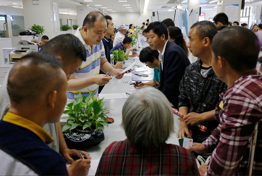 大批求職殘疾人來(lái)到招聘現場(chǎng)