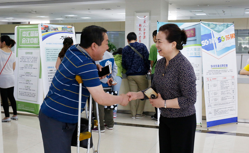 本次活動(dòng)受到市政府領(lǐng)導高度重視,市殘聯(lián)領(lǐng)導、勞動(dòng)局領(lǐng)導、徐州外服總經(jīng)理及相關(guān)政府負責人出席了本活動(dòng)。有23家用人單位到達招聘現場(chǎng),30多位人事經(jīng)理現場(chǎng)講解崗位,提供就業(yè)崗位300多個(gè),涉及加工、制造、酒店、超市、電子商務(wù)等行業(yè),其中不乏有萬(wàn)邦醫藥、萬(wàn)科物業(yè)、波司登、卜蜂蓮花等知名企業(yè)。有180多位殘疾人與用人單位達成初步就業(yè)意向。