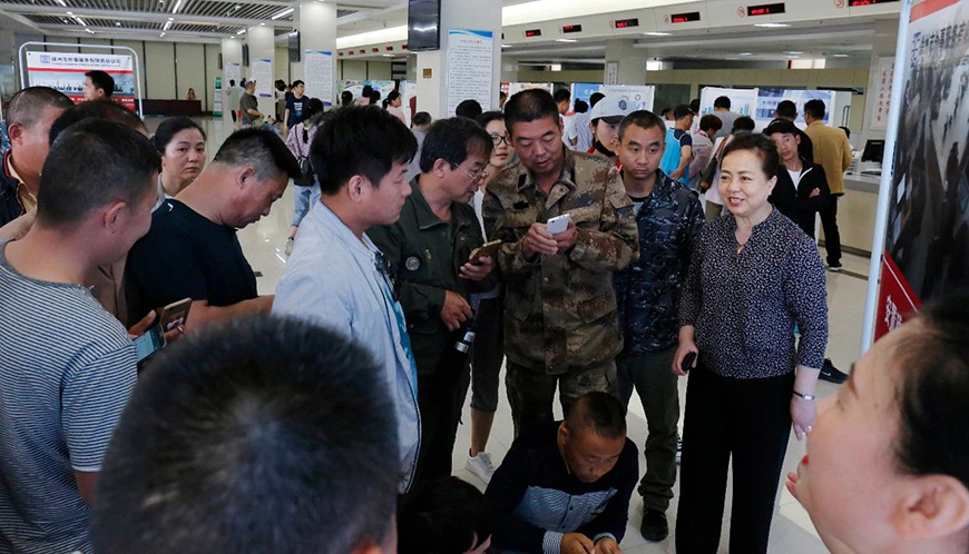 徐州外服總經(jīng)理和工作人員耐心為求職者介紹招聘單位的情況,并且向求職者了解個(gè)人情況,幫助求職者更好的找到合適的工作。